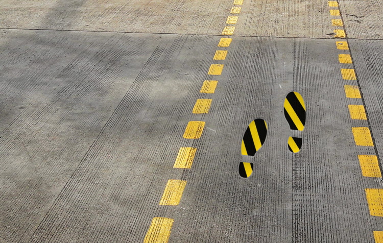 We have made sure all our social distancing floor stickers are available with up to an R12 non-slip safety rating, certified with DIN 51130 and BGR 181. You may, therefore, use our stickers in a range of public and working areas safe in the knowledge that they will not cause a health and safety issue. The anti-slip properties come in both our long term indoor, short term outdoor and long-term outdoor stickers. Our long term indoor and short term outdoor has a non-slip rating of R11 while our long term outdoor stickers have the R12 class.