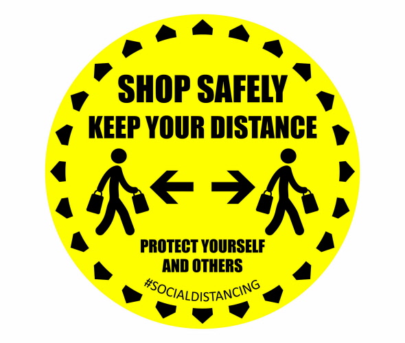 Caution Safety Social Distancing Floor Sticker is printed with Yellow Shop Safely Keep Your Distance Bag design.