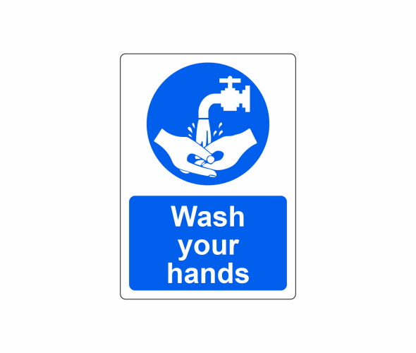 Caution Safety Social Distancing / COVID19 Wall Graphics printed with a 'Wash your hands' design.
