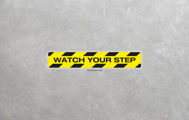 Caution Safety Floor Sticker is printed with ‘Watch Your Step’ design.