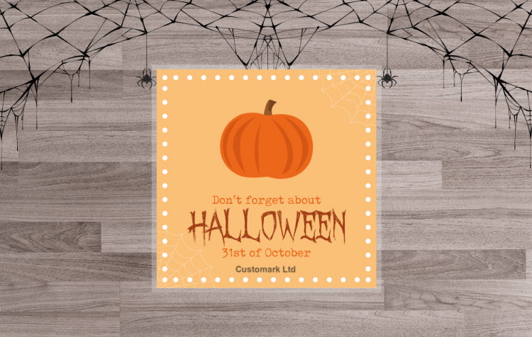 Ideal for a spooky floor decoration, available in the design shown or as your own customised Halloween graphic.