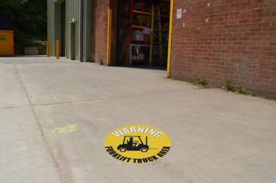 Warning Forklift Truck Area Safety Floor Sticker, Outdoor Long Term 500mm Diamerter.