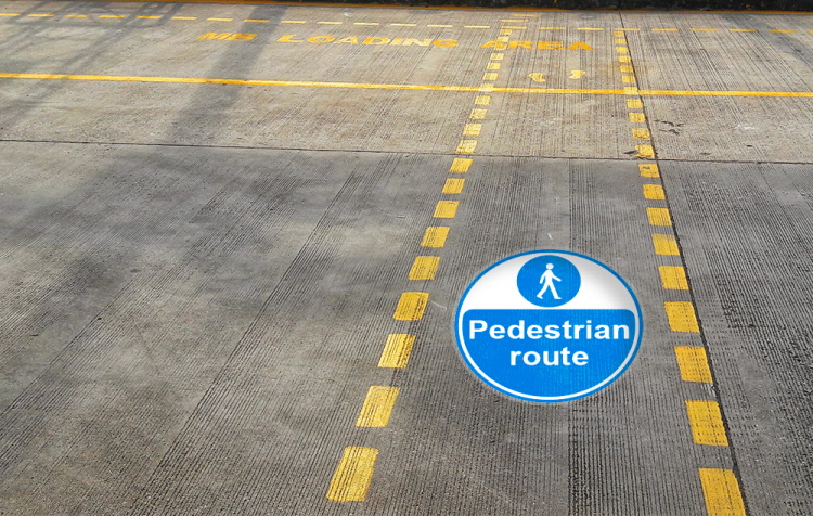 Caution Safety Floor Sticker is printed with ‘Pedestrian Route’ design.