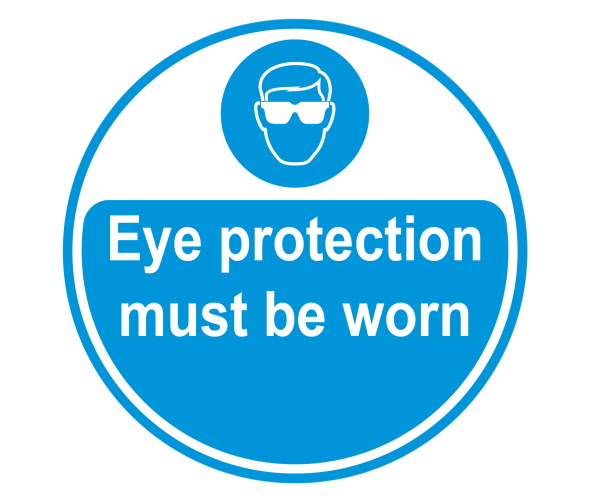 Caution Safety Floor Sticker is printed with ‘Eye protection must be worn’ design.