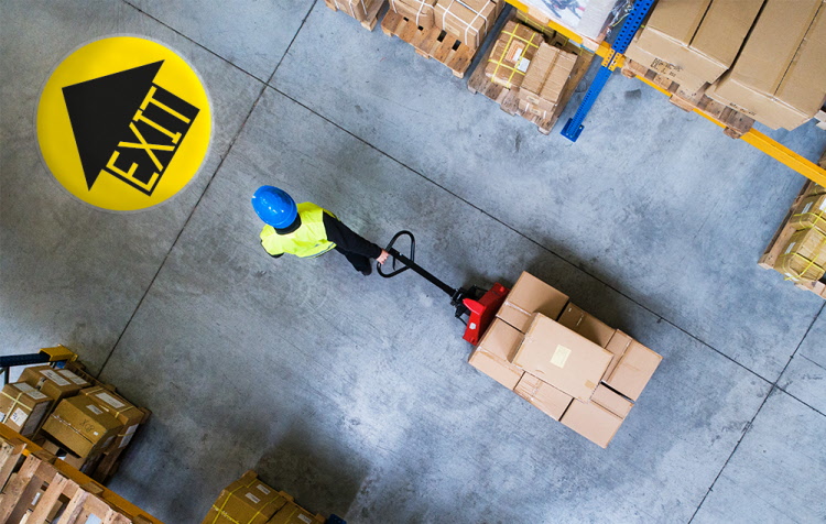 Caution Safety Floor Sticker is printed with an 'Exit arrow design.