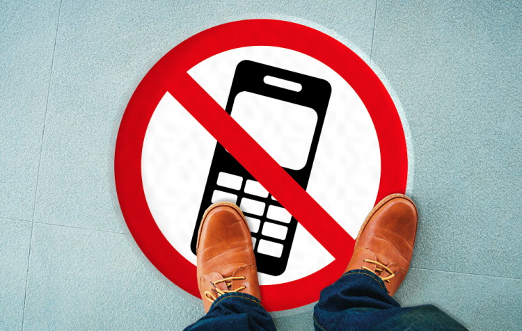 Caution Safety Floor Sticker is printed with a 'No mobile phone' safety design.