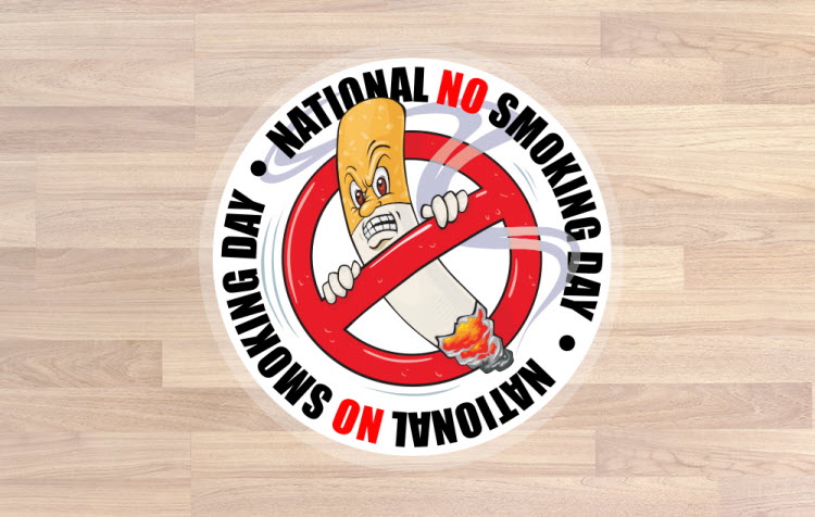 National No Smoking Day Floor Sticker with text ‘National No Smoking Day’. Can be printed as design shown or you can customise to match your needs.