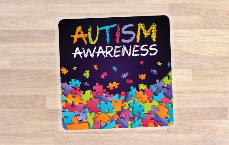 Autism Awareness Floor Sticker with text ‘Autism Awareness’. Can be printed as design shown or you can customise to match your needs.