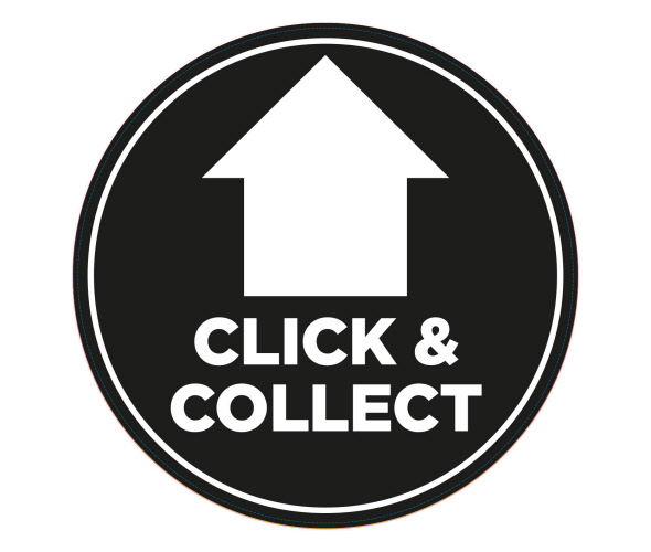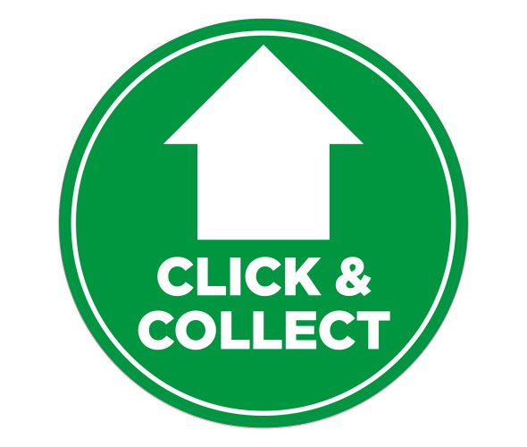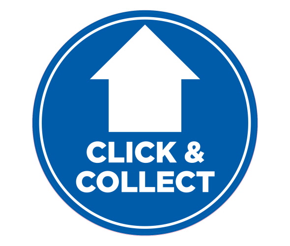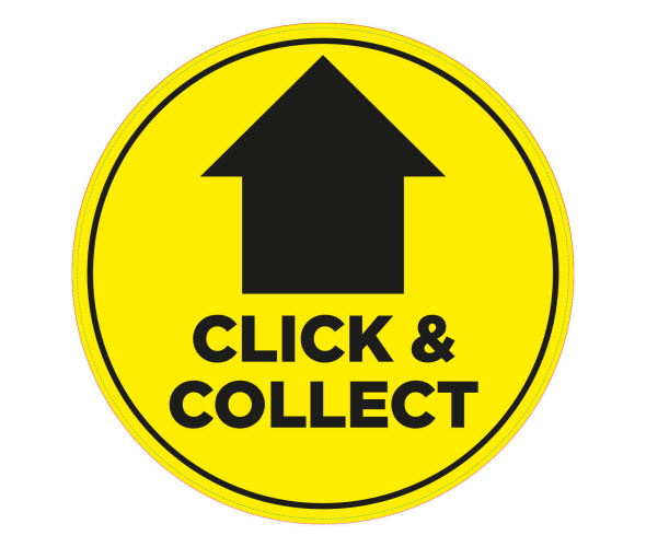 Caution Safety Social Distancing Floor Sticker is printed with 'Click & Collect' design.