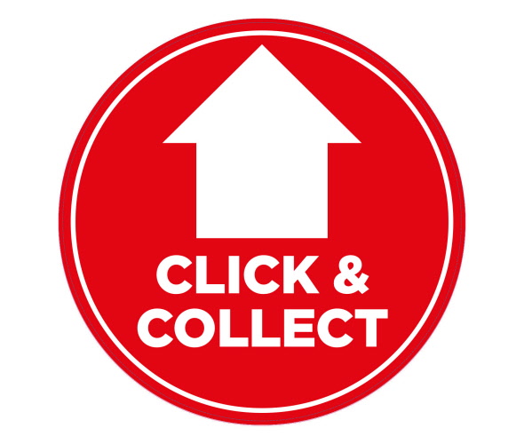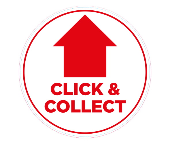 Long Term Outdoor R12 - Click and Collect with Arrow Floor Stickers / Graphics 300mm Dia (Other Colour Options Available)