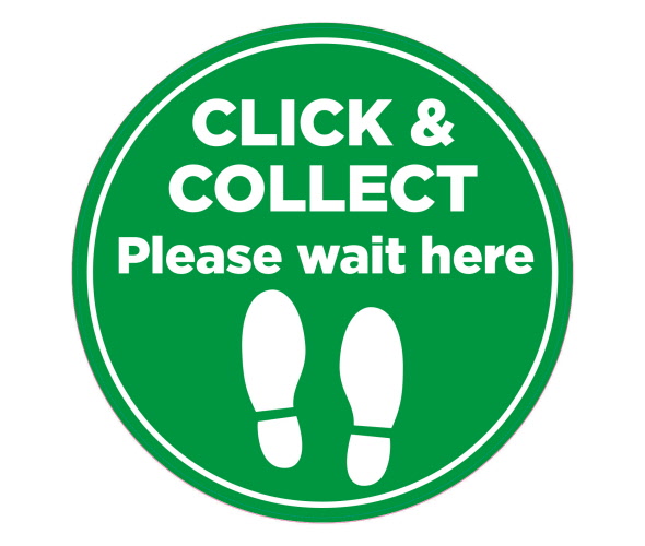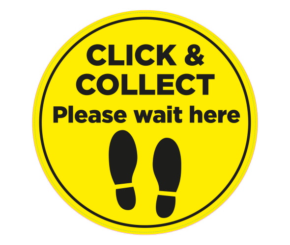 Caution Safety Social Distancing Floor Sticker is printed with 'Click and collect' design.