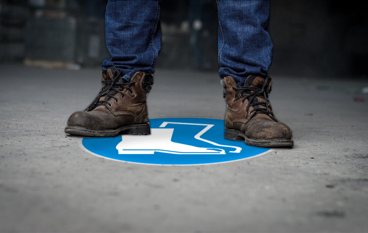 Caution Safety Floor Sticker is printed with a 'Safety shoes' safety design.