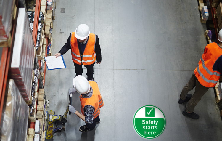 Caution Safety Floor Sticker is printed with ‘Safety Starts Here' design.