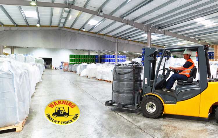 Caution Safety Floor Sticker is printed with ‘Warning - Forklift Truck Area’ design.