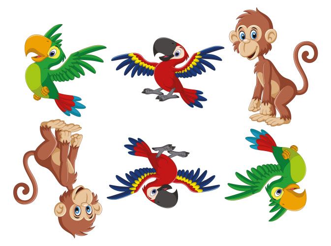 Parrots and Monkeys Floor and Wall Sticker Kit - Pack of 6
