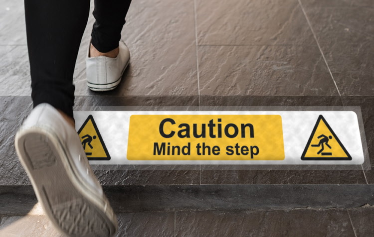 Caution Safety Floor Sticker is printed with ‘Caution – Mind the Step’ design.