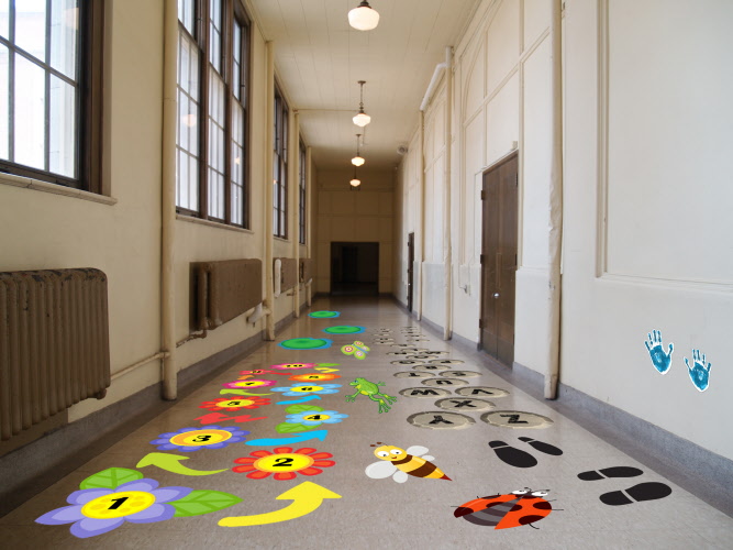 All new Sensory Floor Sticker Kit. These graphics are ideal for brightening up a walkway in a creative learning way and can be used for fun activities. Product supplied in kit form, so it can be laid out to suit your own individual area.